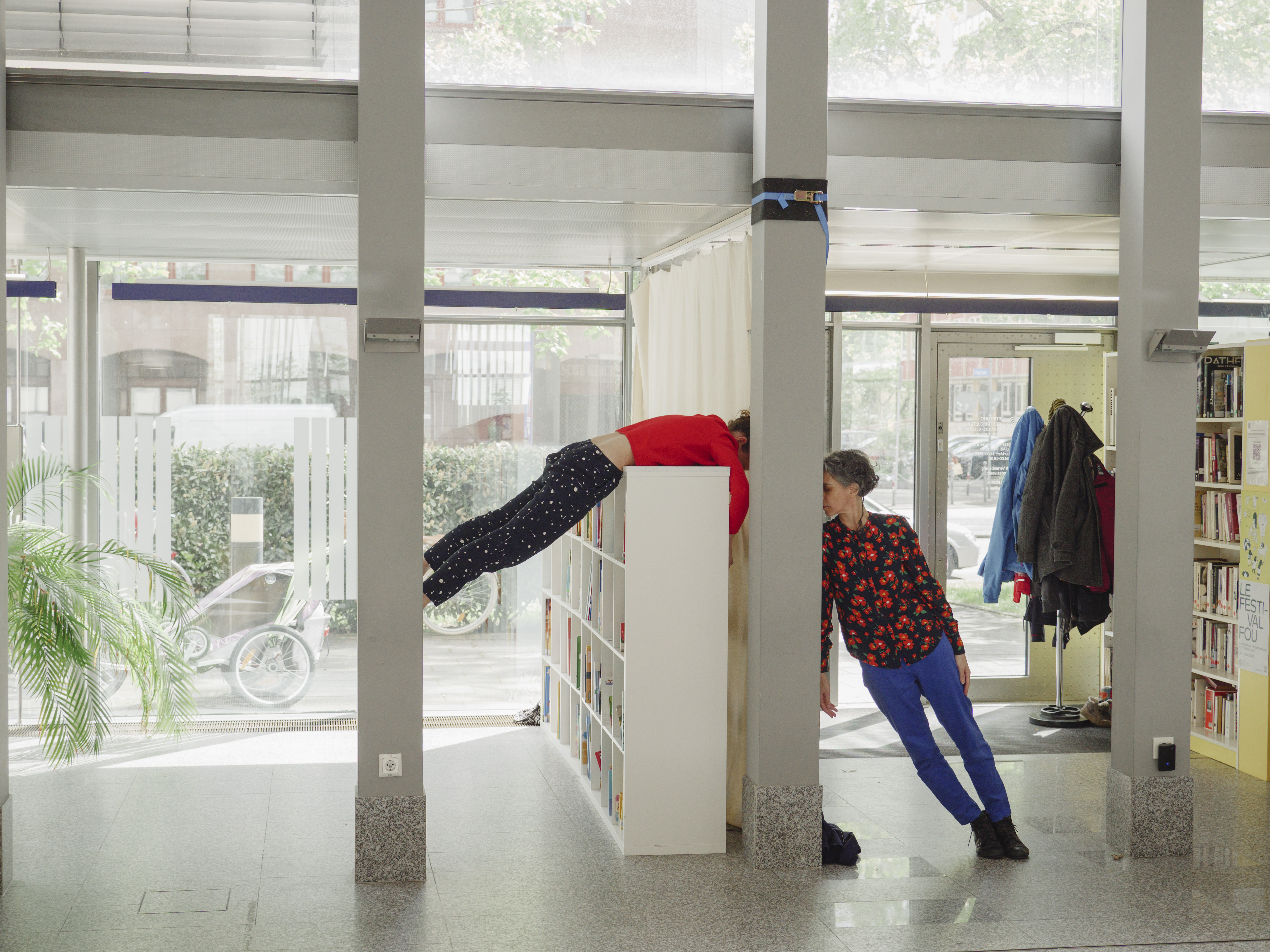 Bücher, die man tanzen kann: Collection dançer ist ein Projekt des Lyoner Verlages Quadrille, welches in Kooperation mit Künstlern und Performern den tänzerischen Ausdruck bei Kindern fördert. A contrario heißt das Stück, in dem sich zwei Körper – wie zwei Buchseiten – gegenüberstehen und sich abwechselnd miteinander oder gegeneinander bewegen. Ein Stück wie geschaffen für die Mediathek der Stiftung, die zum Ort überraschender Choreographien wird. Bérengère Valour und Mary Chebbah spezialisieren sich auf tänzerische Vermittlung und innovative Formate für junges Publikum.