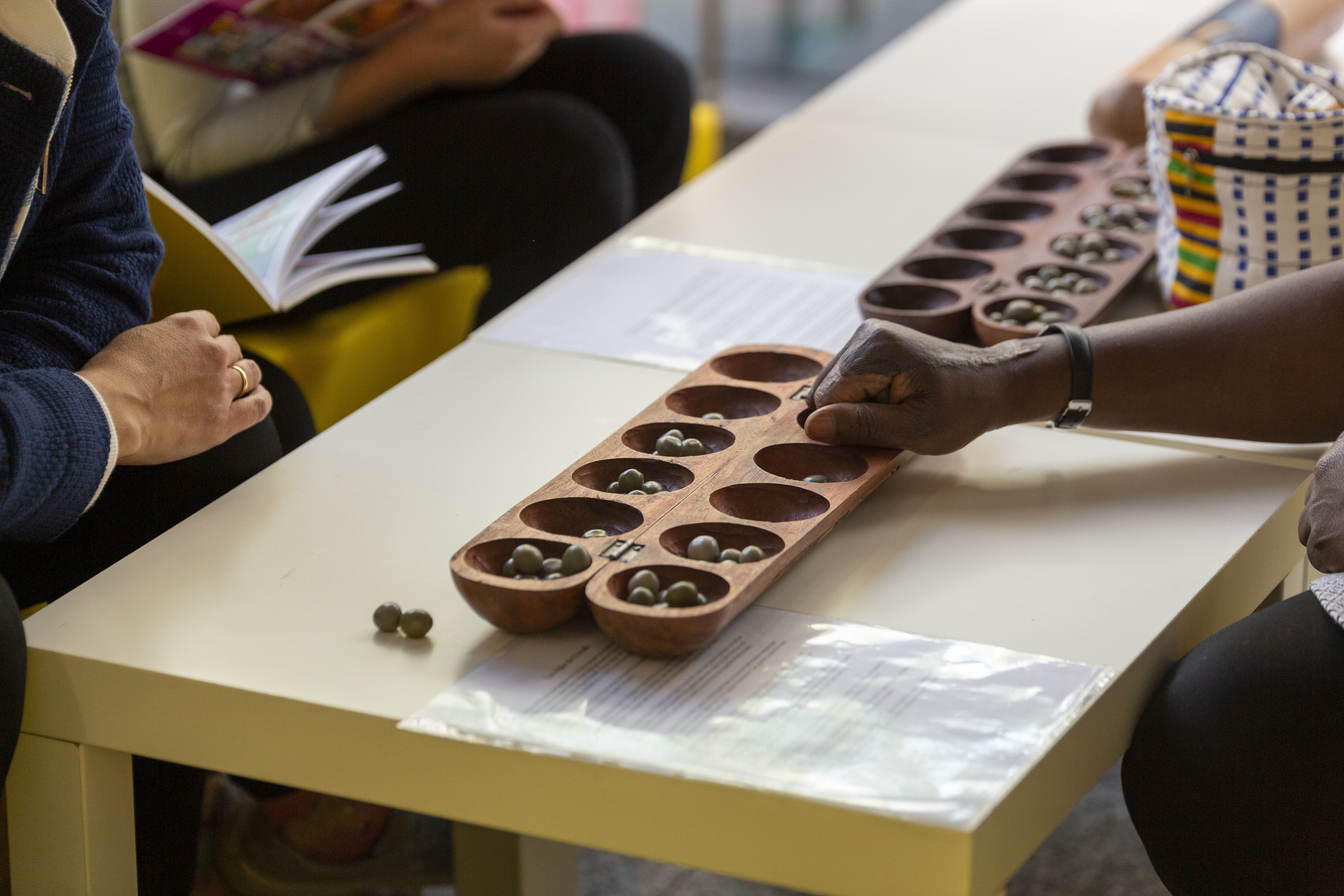 Spiel- und Schminkecke; jeu d‘Awalé avec Patricia