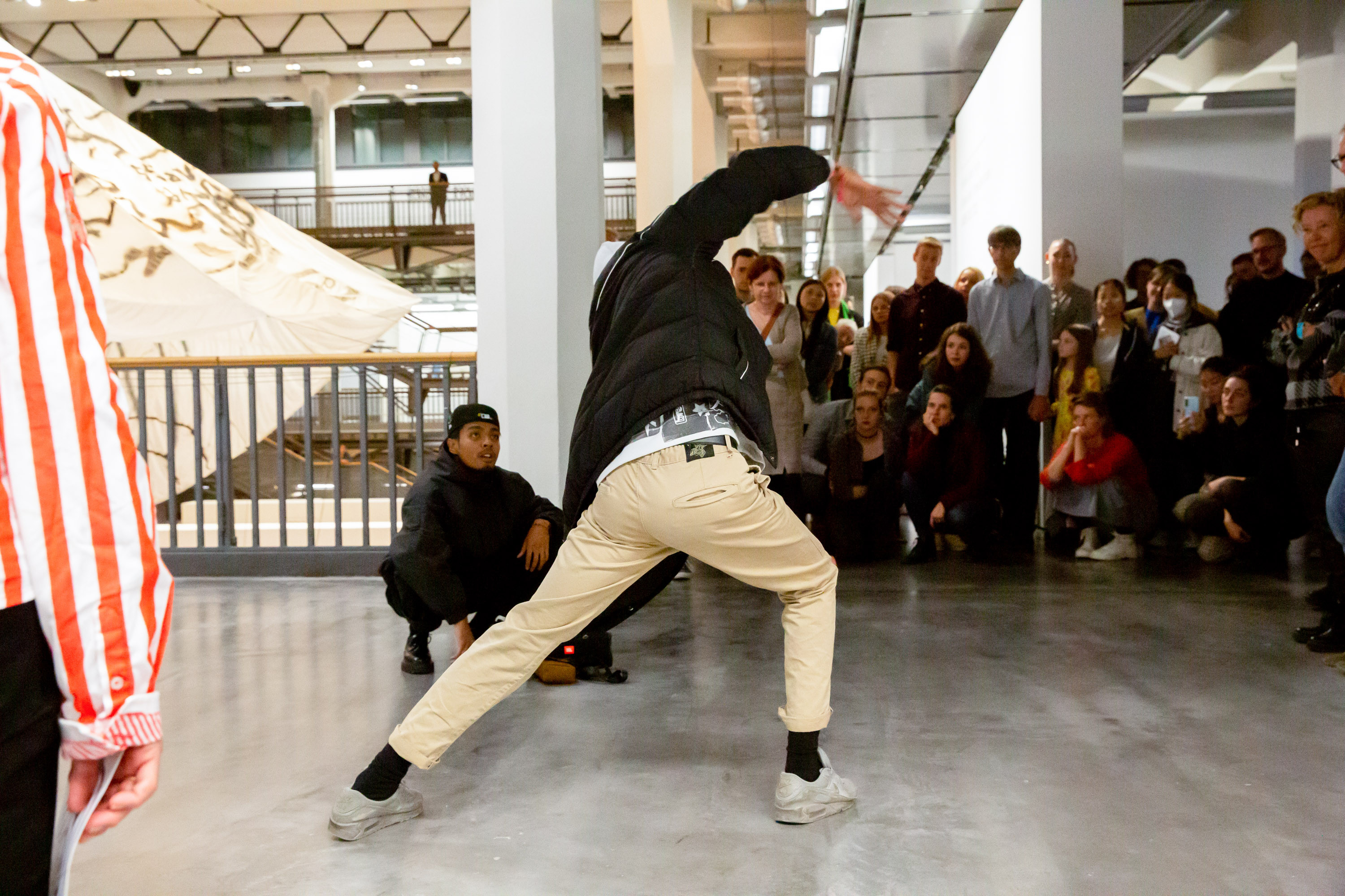Die Tänzerinnen und Tänzer inszenieren eine Dance-Battle-Performance, die die Schichten aus den Parallelwelten der Stadt und der Untergrundgemeinschaften widerspiegelt. Ihr Kampf unterstreicht die anhaltenden Spannungen zwischen den verschiedenen Gruppen.