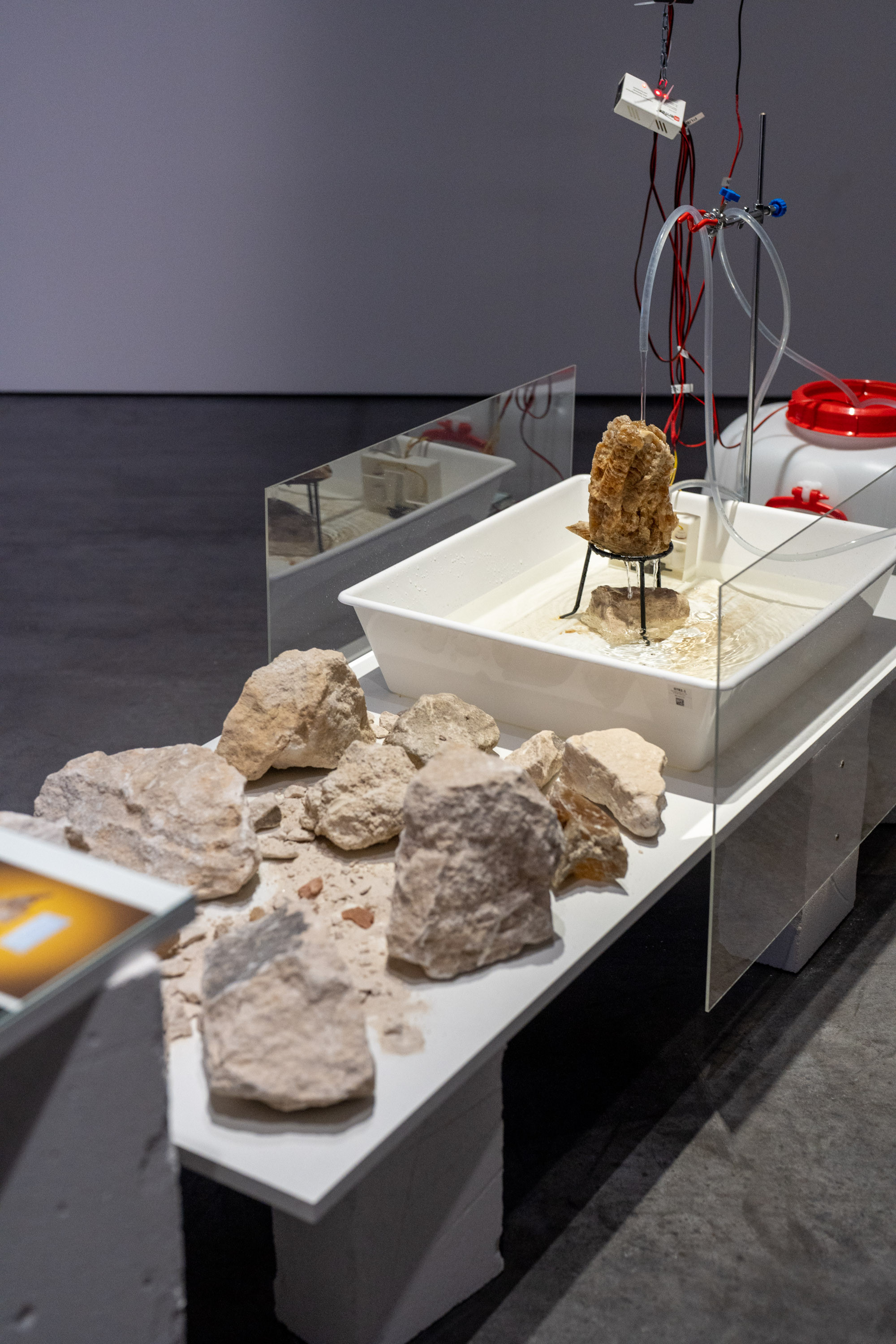 Karolina Sobel beschäftigt sich während ihres Stipendiums in Paris mit dem Phänomen der Dolinen – fontis im französischen: Gesteinseinbrüche, entstanden als Reaktion auf Feuchtigkeit. Sobel erforscht die historischen Pariser Stollen sowie die Kultur der cataphiles. Im Rahmen einer petrographischen Versuchsanordnung zeigt sie die Fragilität des Pariser Untergrunds und dessen Konservierung.