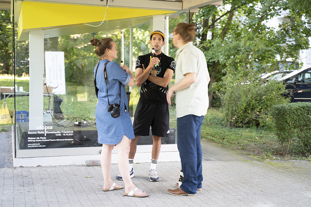 La série d'expositions Retour de Paris se poursuit avec une proposition in-situ du duo d'artistes Konstantin Friedrich et Sanna Reitz. Leur intervention se déroule sur un site unique : la vitrine à l'entrée de la cité historique du Bauhaus à Dammerstock dans le sud de Karlsruhe. À partir de cet ensemble, conçu par Walter Gropius et promu par Kurt Schwitters lors d'une exposition en 1929, les artistes réaliseront une intervention sculpturale et une œuvre vidéo créée in situ :Sanna Reitz reflète la matérialité prédominante du site : béton versus verdure - un antagonisme bien connu en milieu urbain qu'elle cherche ici à (re)concilier, tout en s'opposant à l'horizontalité stricte imposée par l'ensemble Bauhaus. Konstantin Friedrich poursuit la série de vidéos intitulée "FOMO" - Fear of missing out, clin d'oeil ironique à l'angoisse de rater quelque chose quelque part dans ce monde multisensoriel. Un document filmé relate une intervention éphèmere ayant eu lieu sur place antérieurement, en absence du public.