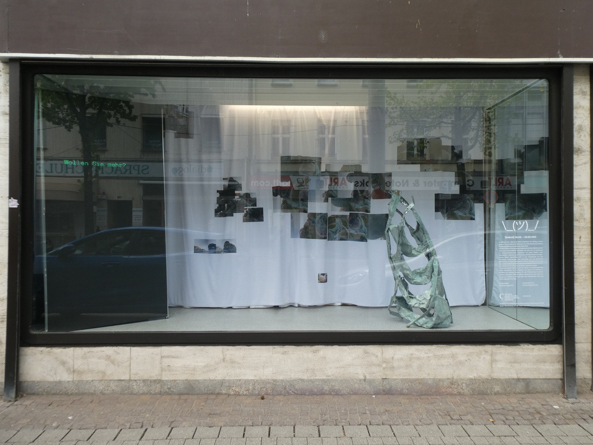 Exposition en vitrine : le cycle d’expositions « Retour de Paris » se poursuit en 2021 avec une proposition collaborative de Johannes Hugo Stoll et Florian Model. Complémentaire, leur pratique artistique englobe installations, vidéos et interventions dans l’espace public. Ici, elle prend la forme d’une installation en vitrine de magasin, visible jour et nuit.