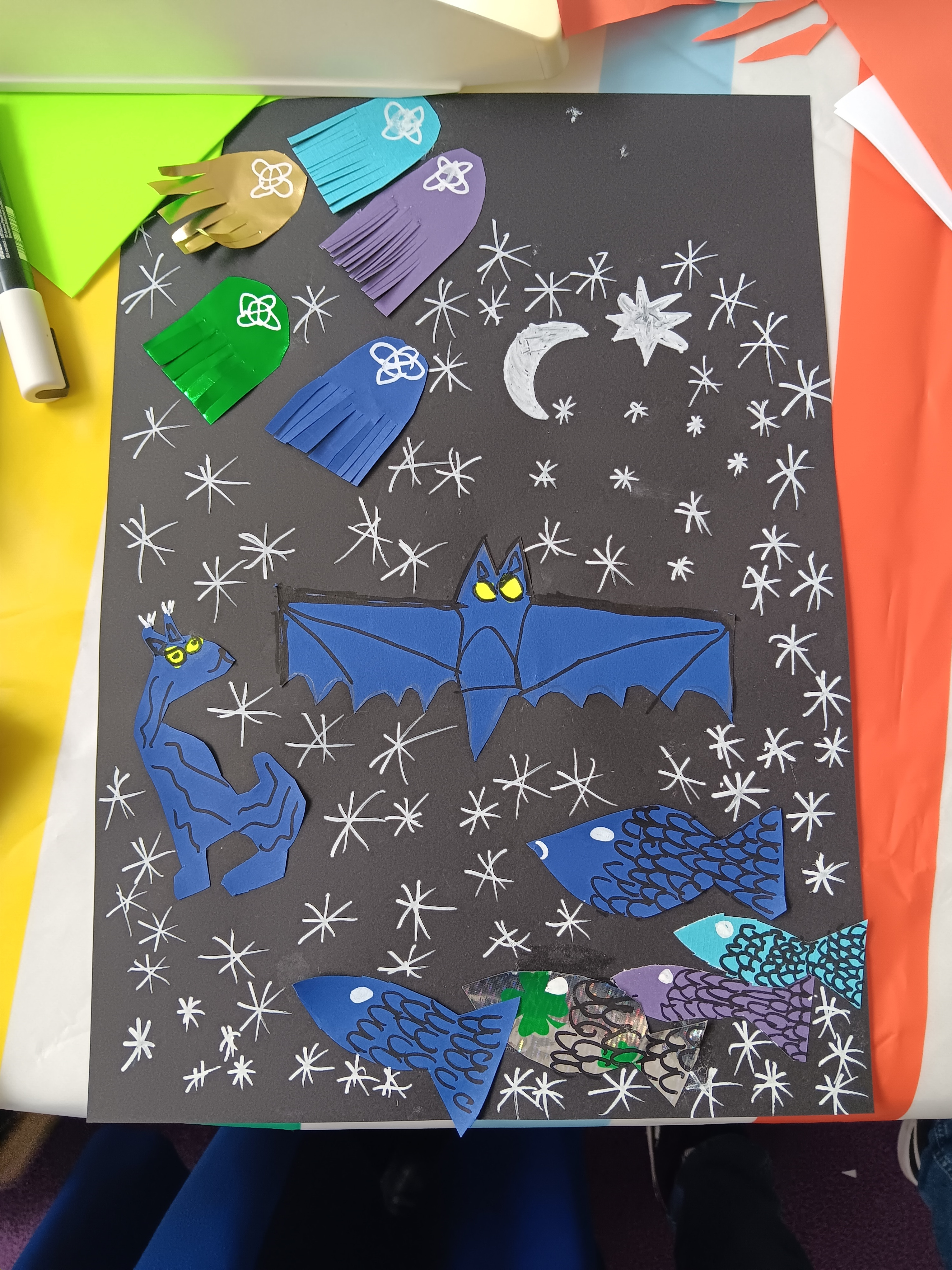 Am Ende des Workshops hältst Du den geheimnisvollen Einband eines verschwundenen Buches aus farbigem Papier in Händen, wie ein*e echte Illustrator*in!