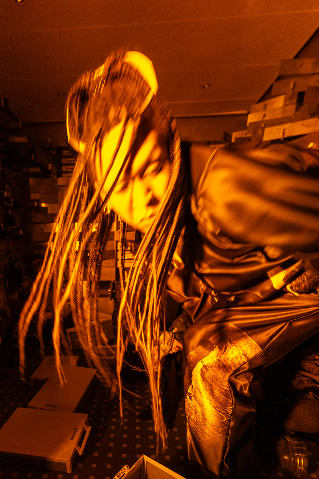 Die Performance im Rahmen der Art Karlsruhe in Zusammenarbeit mit der Künstlerin Elle Fierce fragt nach den Kontinuitäten kultureller Artefakte im europäischen Besitz. Sie aktiviert die textile Arbeit "Contextual Couture" von Charlotte Eifler im Ausstellungsraum, die uns Camouflage Anzüge vorstellt zur Rückführung ebendieser Artefakte.