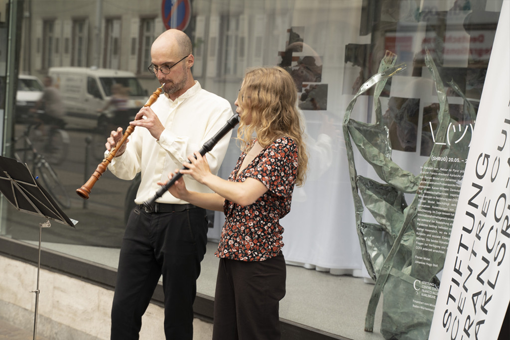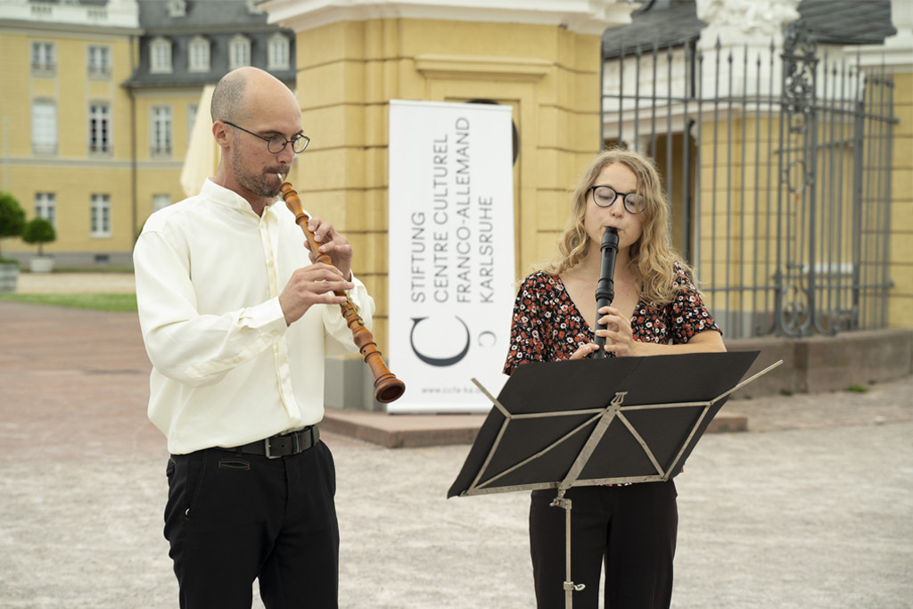 En 2021 nous organiserons pour la deuxième fois la Fête de la Musique à Karlsruhe. Evénement phare du calendrier festif francais, elle tire ses origines d'un engagement citoyen, déclenchant une foule de concerts improvisés en ville. Le 20 juin, nous proposons un retour aux sources : Commandez votre concert privatif - une sérenade en plein air, à écouter depuis votre balcon, sur une place ou dans votre cour, grâce au duo Alentejo. Antoine Cottinet et Luise de Calheiros ous proposent des extraits des compositeurs baroques Joseph Bodin de Boismortier et Jacques Paisible.