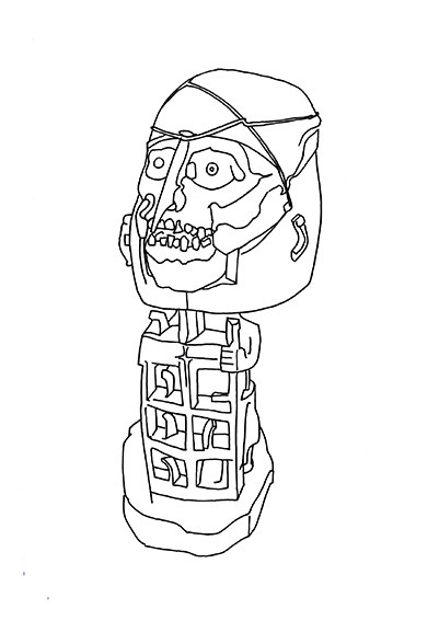 Depuis 2009, l’artiste-plasticienne Heidi Wood mène un travail sur les « Musées du Monde » et ses « Spécimens gênants ». S’appuyant sur un corpus de dessins et de collages réalisés dans un grand nombre d’institution muséales dans plus de 30 villes, elle interroge, pour ce nouveau projet, la circulation d’objets de provenance diverses – particulièrement ceux issus des conquêtes coloniales – au sein des musées des pays francophones. Les collections muséales sont envisagées comme des récits de cohésion nationale dont la forme évolue en écho aux changements d’optiques géopolitiques et sociétales. En témoignent la transformation de statut des œuvres dites désormais d’ « arts premiers » et les pressions en faveur de leur restitution, ainsi que la disparition des vitrines des spécimens incorporant les dépouilles humaines. L’artiste s’intéresse également aux objets génériques qui se retrouvent de pays en pays. Les codes QR sur les affiches permettront d’accéder aux contenus souterrains : un descriptif bilingue du projet et des enjeux spécifiques du pays représenté, ainsi qu’un diaporama de dessins supplémentaires.