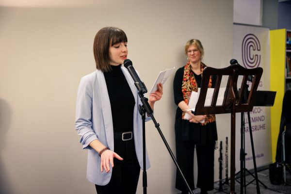 Natalie Friedrich, slammeuse à Karlsruhe - Mot de Bienvenue : Gaël de Maisonneuve, Consul général de France à Stuttgart Dr. Frank Mentrup, Oberbürgermeister der Stadt Karlsruhe