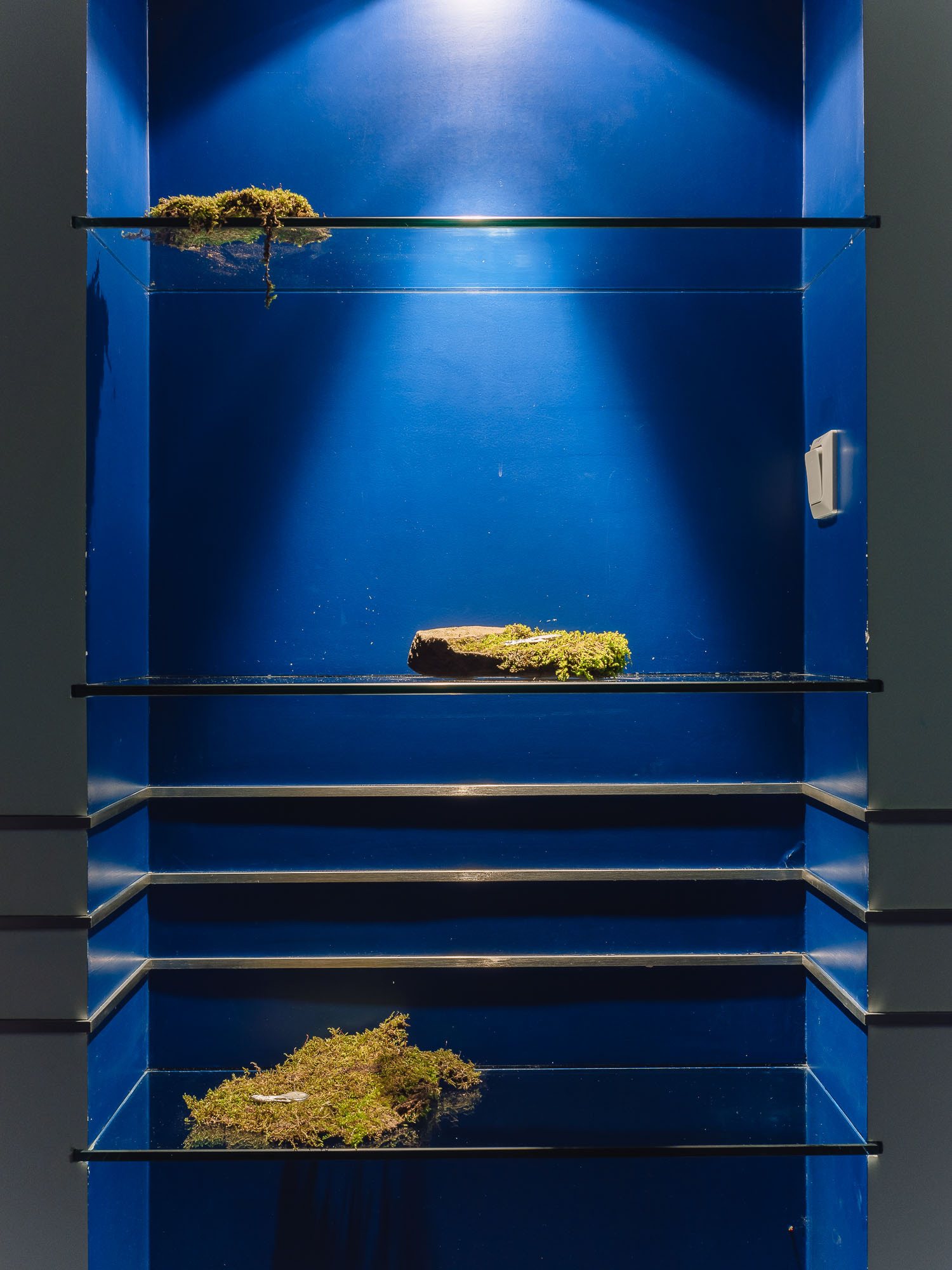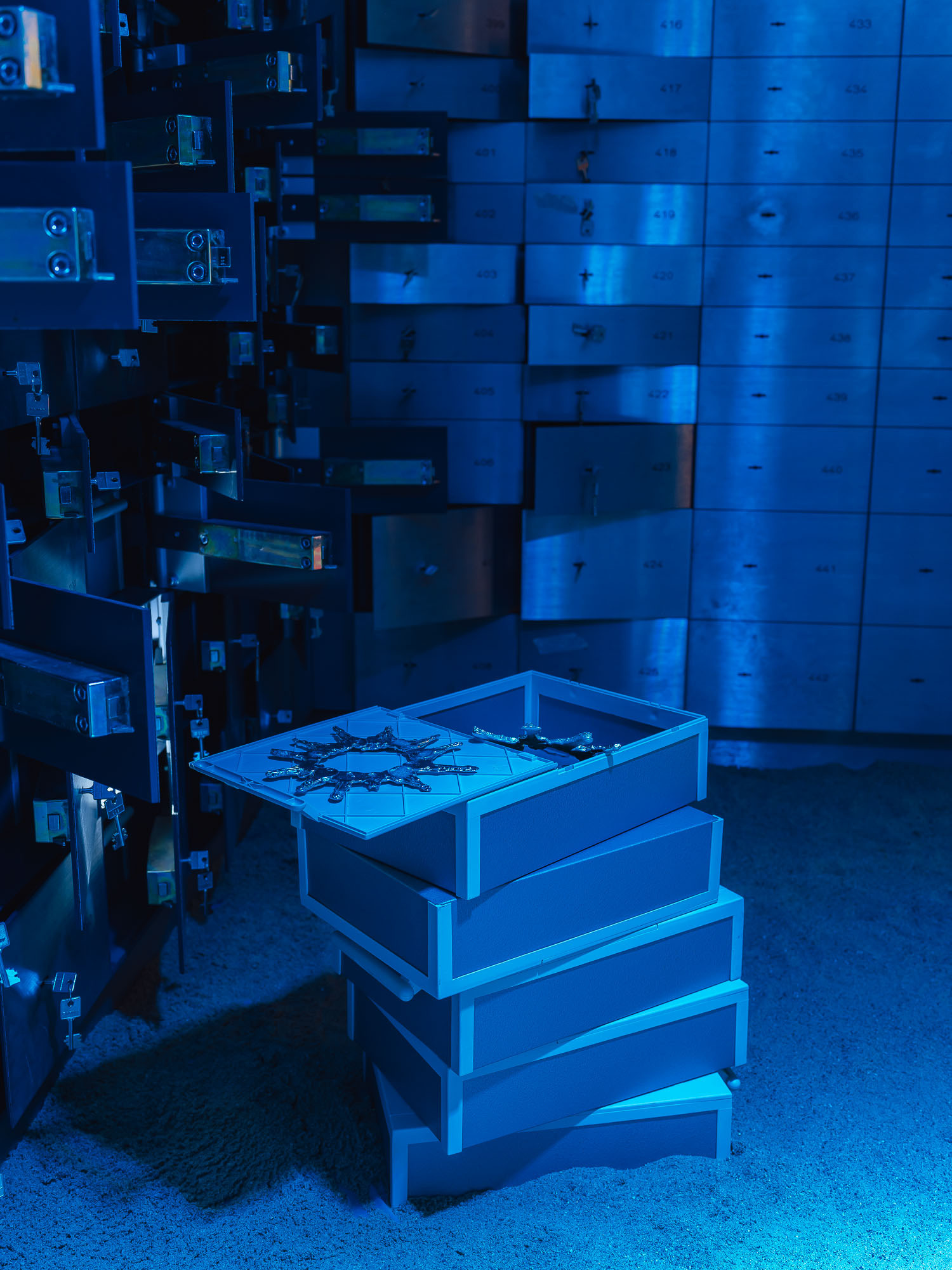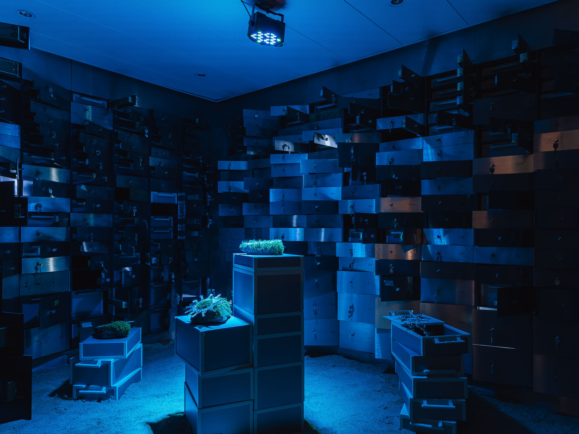 L’exposition intitulée « Out of bounds » par l’artiste Juli Gebhardt s’inspire de l’univers du Gaming : tout comme dans un jeu où certain.e.s utilisateur.ice.s essayent d’enfreindre les règles en outrepassant l’architecture virtuelle, elle tente une réappropriation des codes convenus du monde du travail et de l’entreprise au sein de notre époque néolibérale. Pièce phare de son projet, un moulage de son porte-clé transforme le coffre-fort du CCFA une fois de plus en espace d’exposition. Les notions de propriété, d’accès et de sécurité se trouvent érodées par le dispositif.