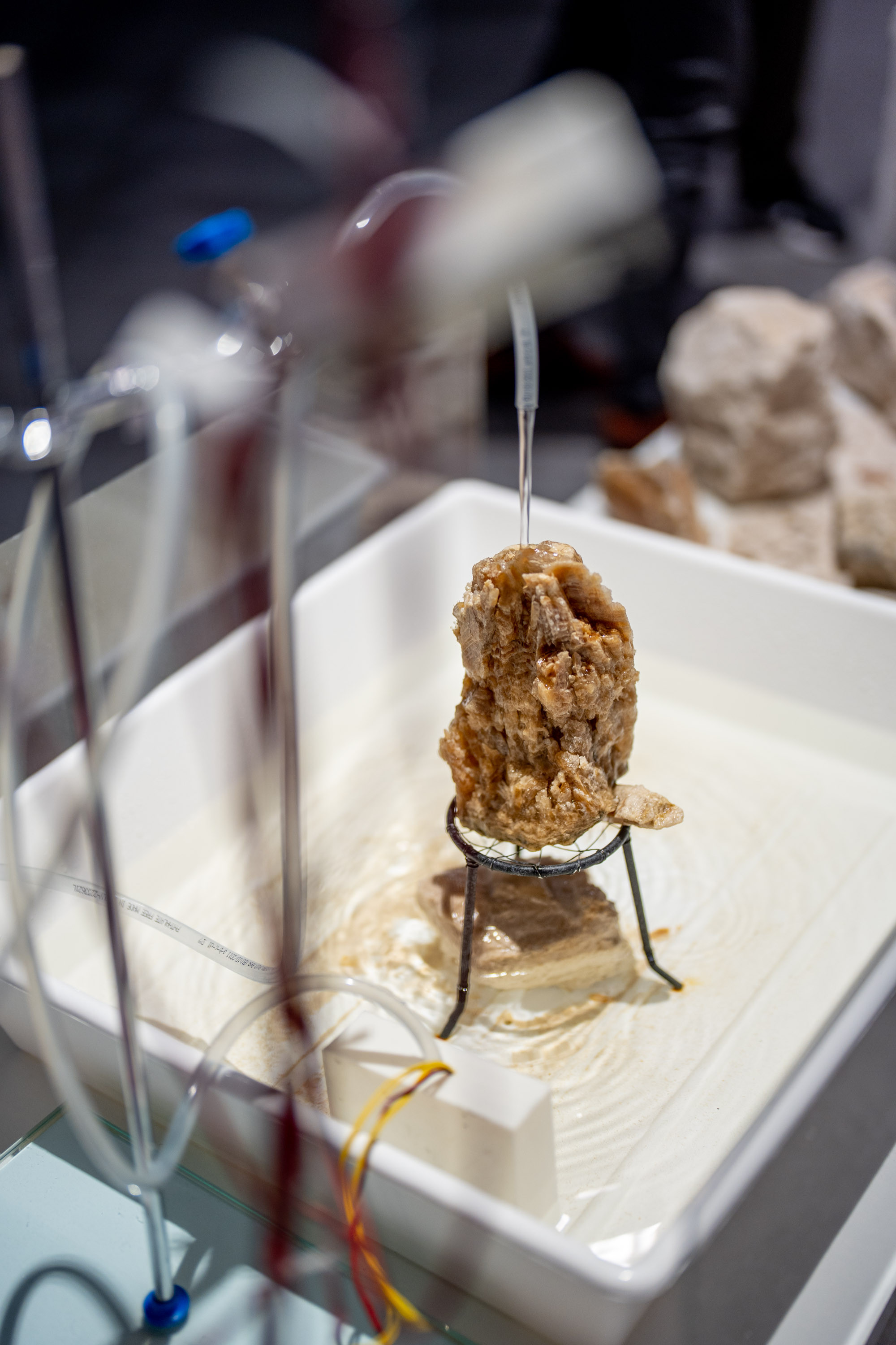 Lors de son séjour à Paris, Karolina Sobel examine le phénomène des fontis, l‘affaissement du sol en raison de la porosité de la roche. L‘artiste explore les galeries souterraines de la capitale ainsi que la culture des « cataphiles ». Dans le cadre d‘un dispositif pétrographique, elle montre la fragilité du sous-sol parisien qui nécessite des interventions préventives de la ville.