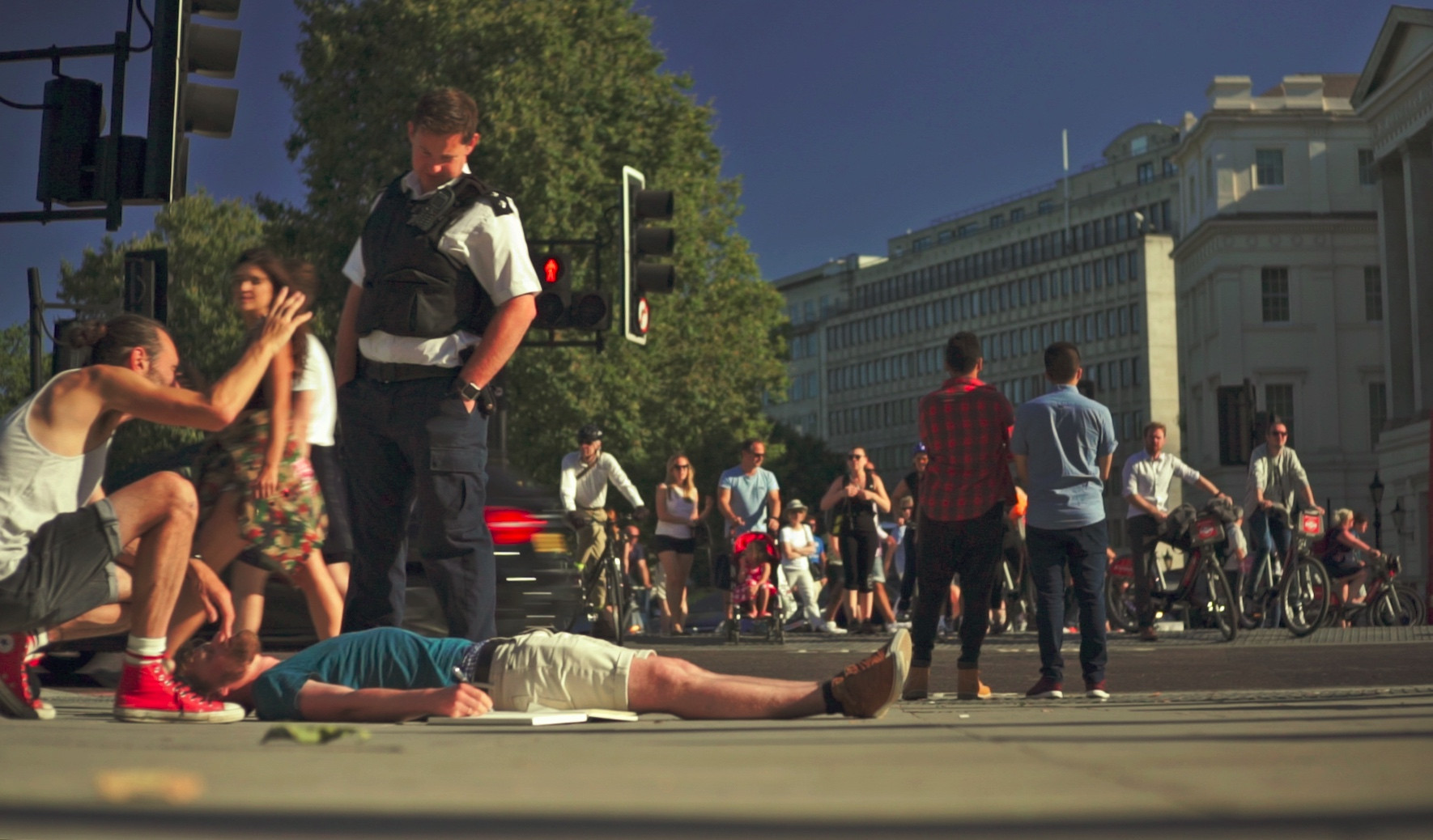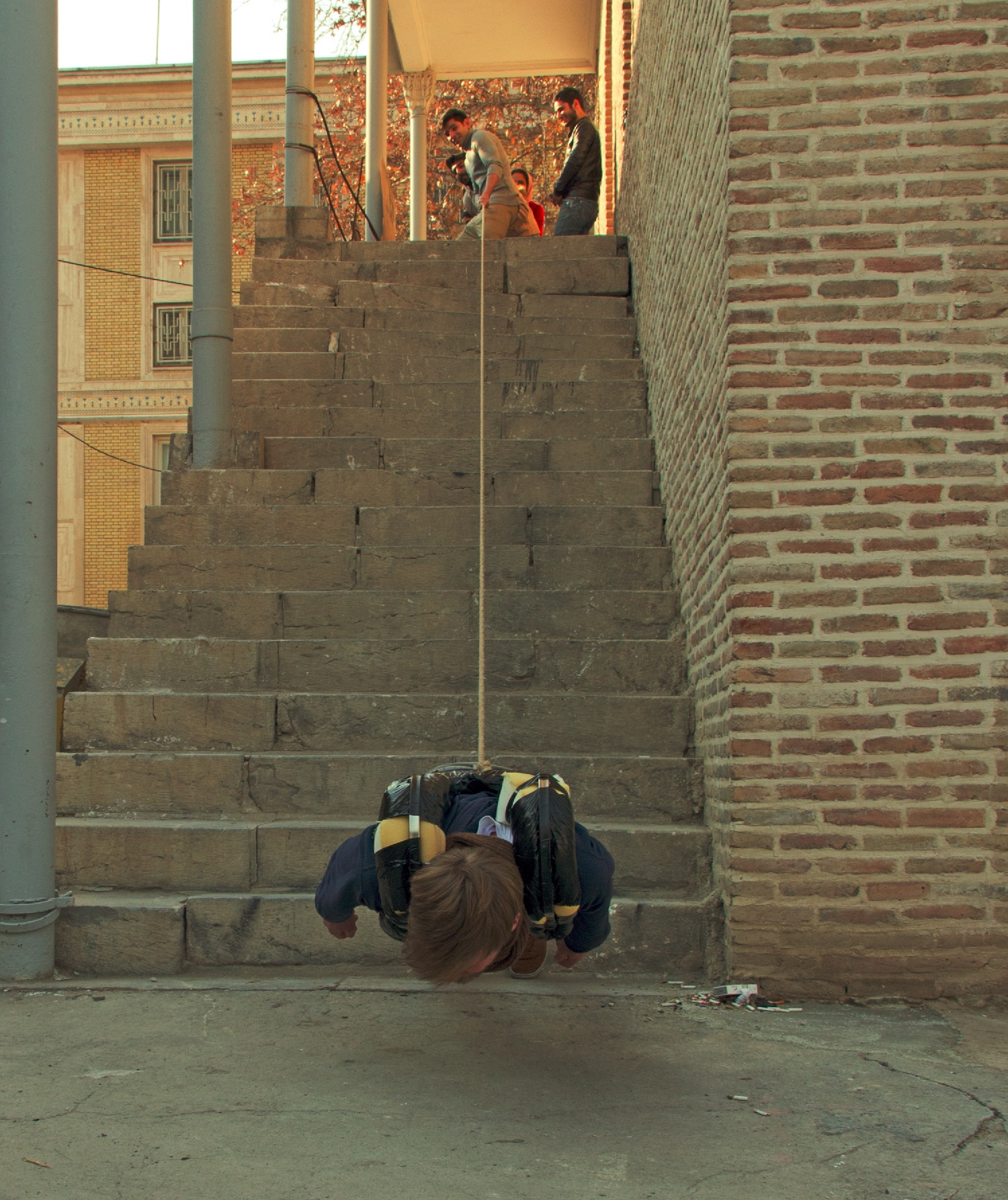 L'artiste-performeur Simon Pfeffel rentre d'une résidence d'artistes à la Cité des Arts à Paris. Fort d'une pratique d'intervention dans l'espace public, Pfeffel s'est lancé dans une série de moments de contact avec des inconnus, leur demandant de le soutenir / maintenir au risque de tomber en arrière si le pacte avec le participant est rompu: